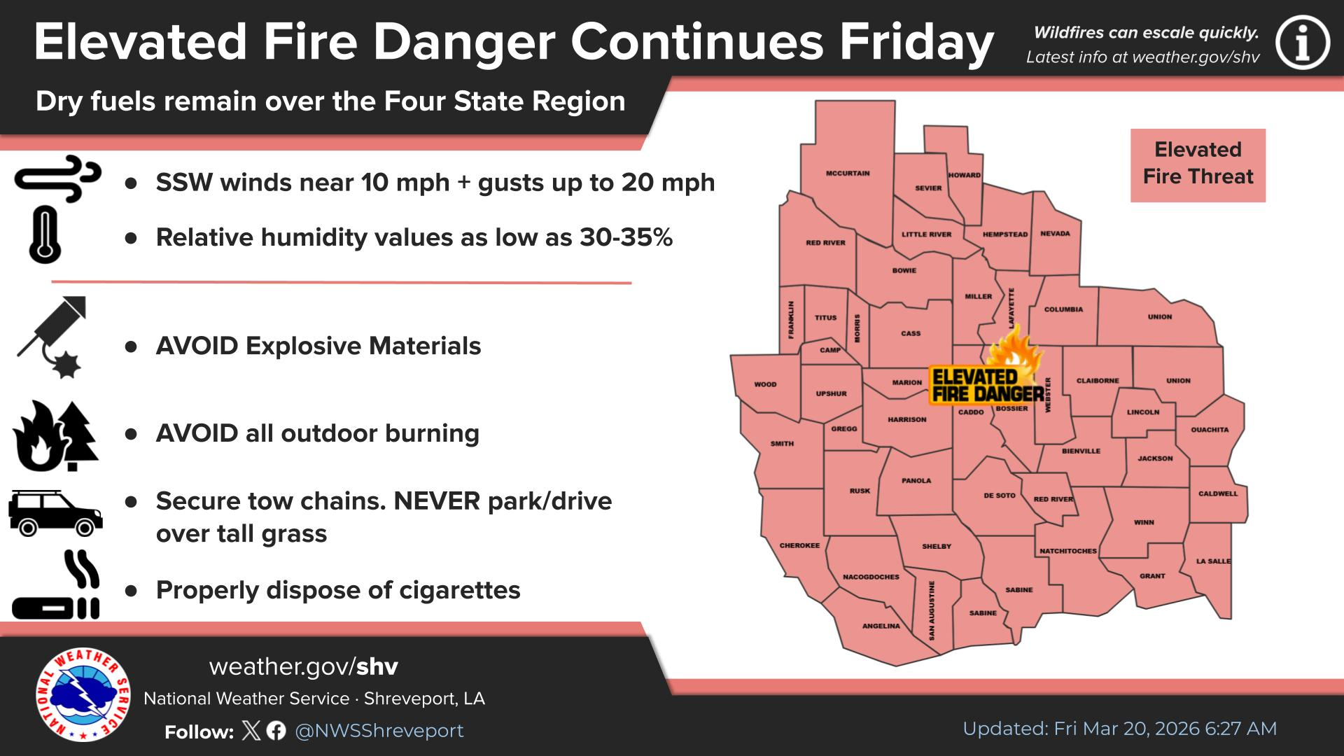 High wildfire danger warning in effect today